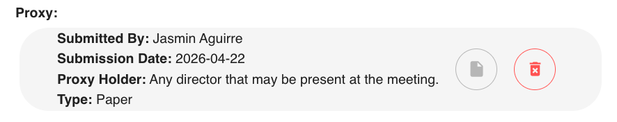 Revoking a proxy removes a submission from the quorum and vote tally. This process ensures that owner records remain accurate if a submission needs to be corrected or cancelled.