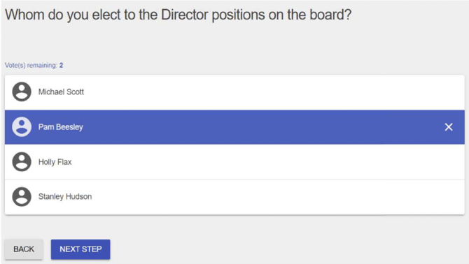 If your meeting involves an election for Director positions, the member will be presented with a candidate list.